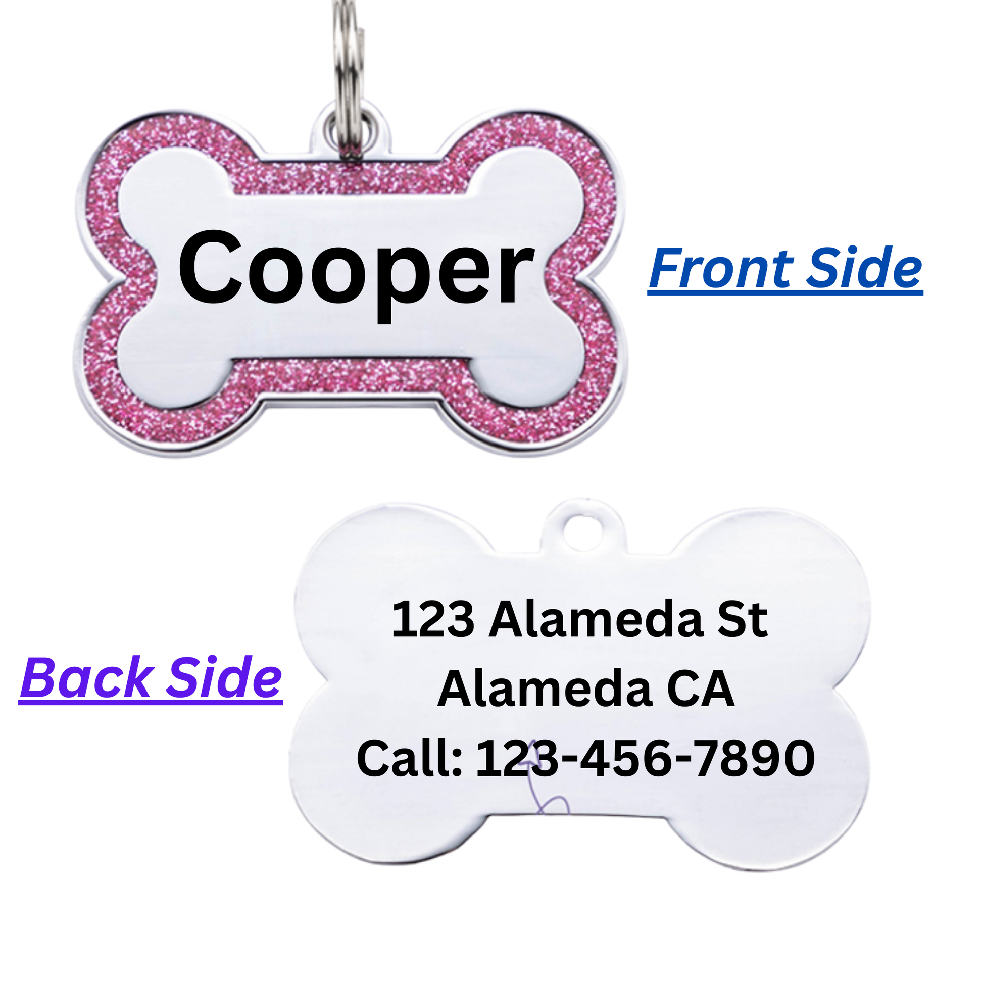 Personalised Glitter Tag Bone Pet ID Tag Engraved Dog Tag Cat Name Tags Custom